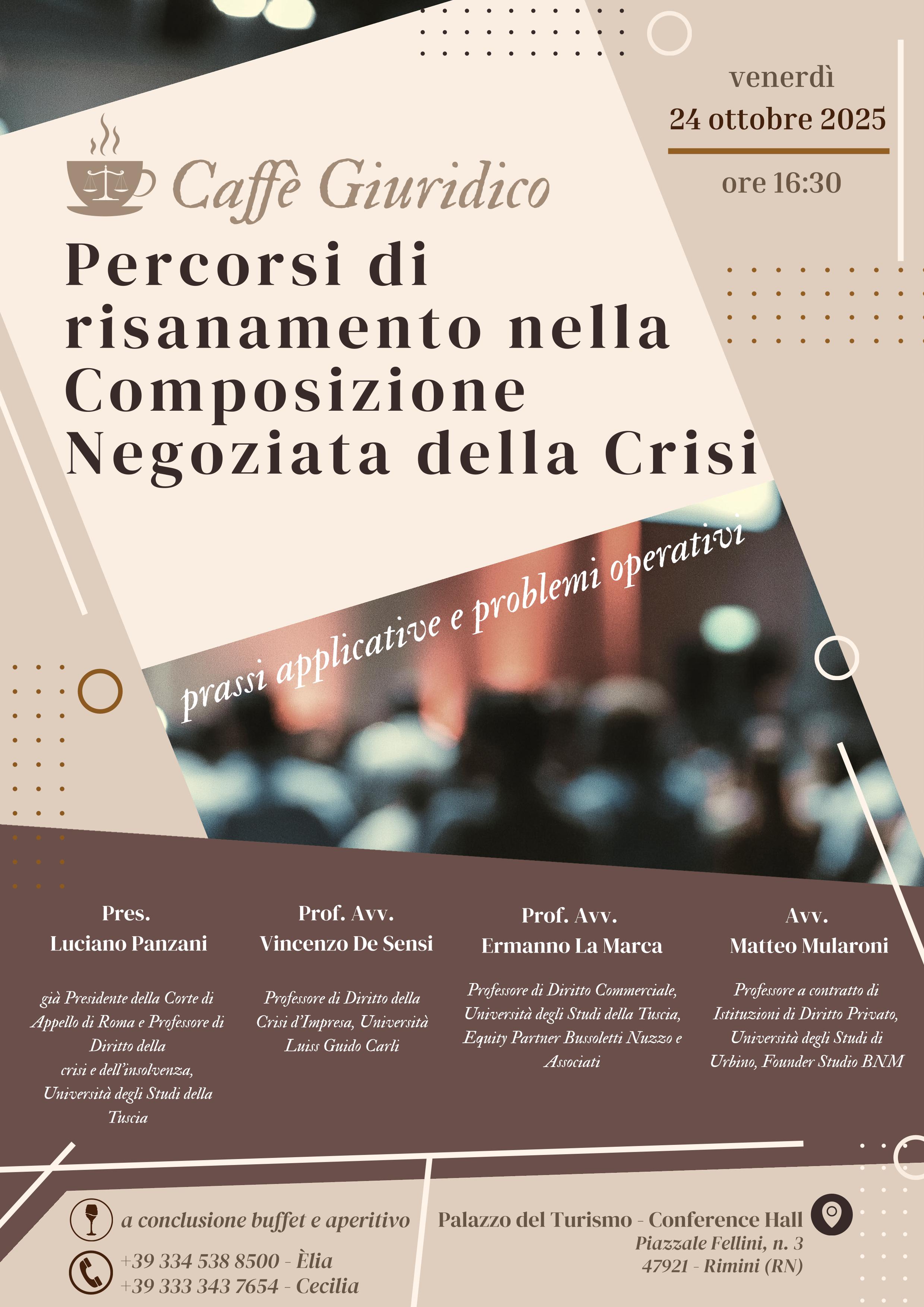 Evento sulla Composizione Negoziata della Crisi italiana - venerdì 24 ottobre ore 16:30.