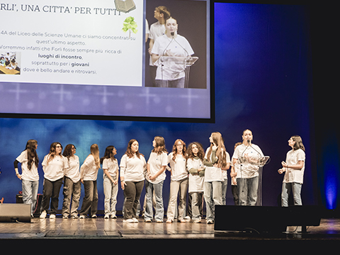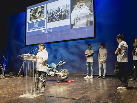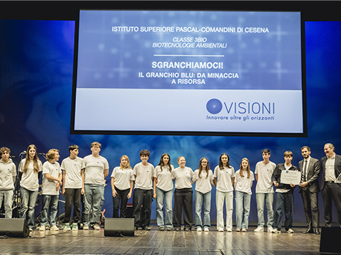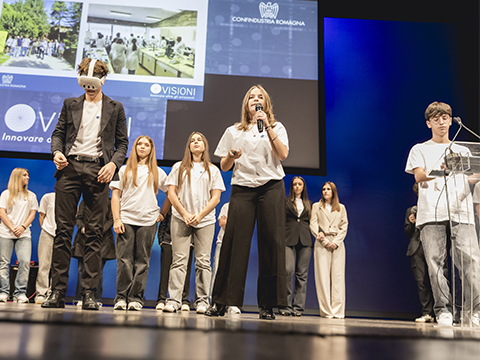 L’iniziativa rivolta alle scuole superiori di Forlì-Cesena, nell’ambito dell’evento “Visioni - Innovare oltre gli orizzonti”, ha coinvolto quasi 300 studenti e studentesse e si è svolta questa mattina al Teatro Bonci di Cesena, dove i partecipanti hanno illustrato le proprie idee per il territorio alle istituzioni e agli imprenditori presenti, che hanno poi votato i progetti più innovativi e convincenti, accompagnati dalla musica della Seveneven Band.