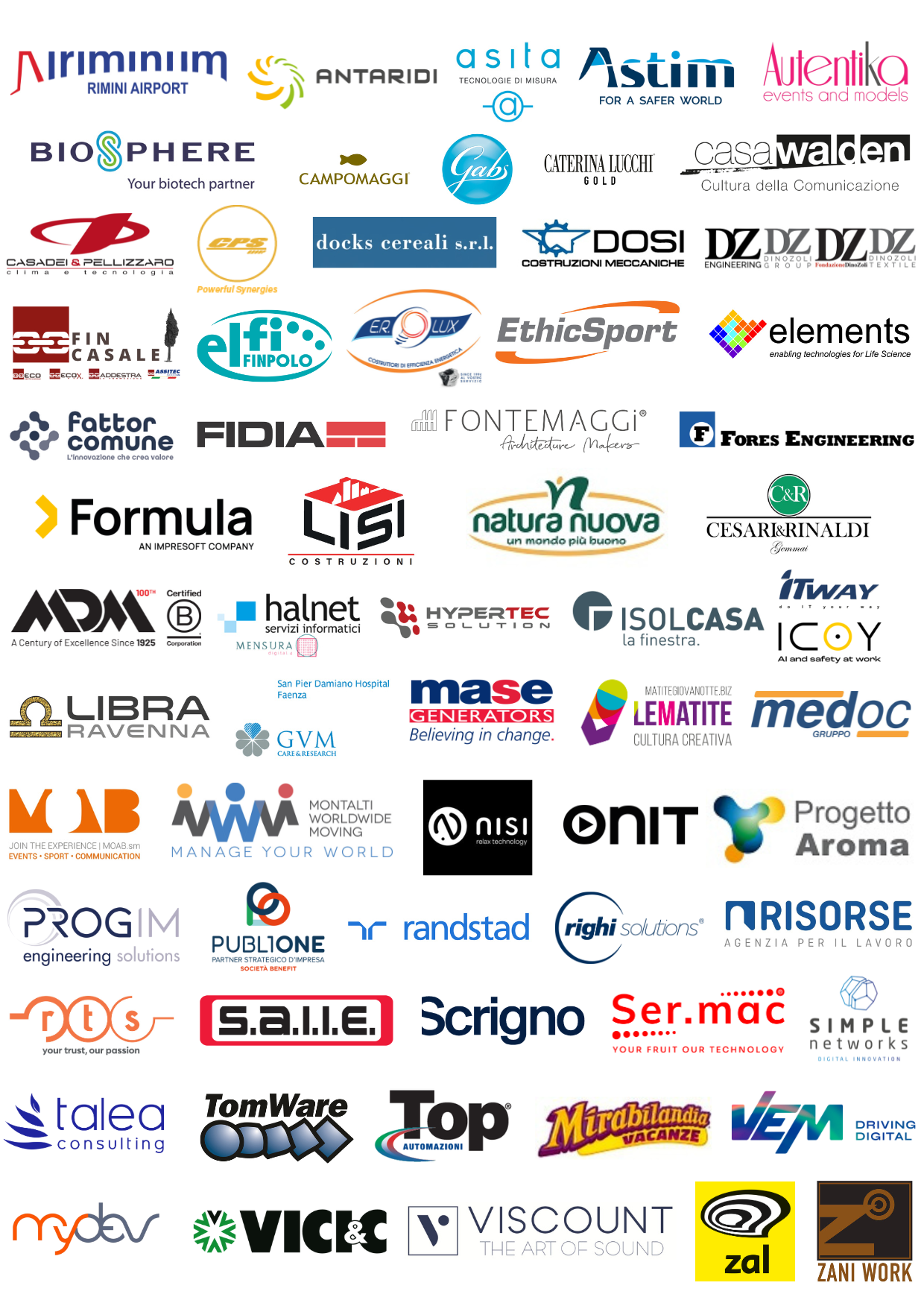 AIRIMINUM 2014 (Aeroporto F.Fellini) di Rimini e S.Marino, ANTARIDI di Fiumana di Predappio, ASITA di Faenza, A.ST.I.M. di Ravenna, AUTENTIKA di Rimini, BIOSPHERE di Forlì, CAMPOMAGGI & CATERINA LUCCHI di Cesena, CASAWALDEN CWC di Forlì, CASADEI & PELLIZZARO di Forlì, C.P.S. GROUP di Castel Bolognese, DOCKS CEREALI di Ravenna, Gruppo DOSI di Fusignano, DZ ENGINEERING di Forlì, GRUPPO FINCASALE - ECO Certificazioni di Faenza, ELEMENTS di Cesena, ELFI di Forlì, E.R. LUX di Forlì, ES ITALIA di Riccione, FATTOR COMUNE di Rimini, FIDIA di Forlì, FONTEMAGGI di Rimini, FORES ENGINEERING di Forlì, FORMULA di Cesena, F.lli LISI COSTRUZIONI di Rimini, FUTURA di Bagnacavallo, FUTURGEM di Rimini, GRAFICHE MDM SB di Forlì, HALNET di Faenza, HYPERTEC SOLUTION di Cesena, ISOLCASA di San Clemente di Rimini, ITWAY di Ravenna, LIBRA RAVENNA di Ravenna, MARIA CECILIA HOSPITAL di Cotignola nella struttura del San Pier Damiano Hospital di Faenza, MASE GENERATORS di Cesena, MATITEGIOVANOTTE.RAVENNA di Ravenna, MEDOC di Forlì, MOAB di Serravalle RSM, MWM-MONTALTI WORLDWIDE MOVING di Cesena, NISI GROUP di Forlì, ONIT di Cesena, PROGETTO AROMA di Faenza, PROGIM ENGINEERING di Cesena, PUBLIONE SB di Forlì, RANDSTAD ITALIA di Forlì, Ravenna e di Rimini, RIGHI GROUP di Mercato Saraceno, RISORSE di Rimini, RTS REMOTE TERMINAL SYSTEM di Forlì, S.A.I.I.E. di Forlì, SCRIGNO di Savignano sul Rubicone, SER.MAC di Cesena, SIMPLENETWORKS di Rimini, TALEA CONSULTING di Faenza, TOMWARE di Ravenna, TOP AUTOMAZIONI di Poggio Torriana, TRAVELMIX (Parco Mirabilandia) di Savio di Ravenna, VEM SISTEMI e MY DEV di Forlì, VICI & C. di Santarcangelo di R., VISCOUNT INTERNATIONAL di Mondaino di Rimini, ZAL TELECOMUNICAZIONI di Forlì, ZANI WORK DI ZANI ISABELLA E CRISTINA di Cesena, DINO ZOLI TEXTILE di Forlì.