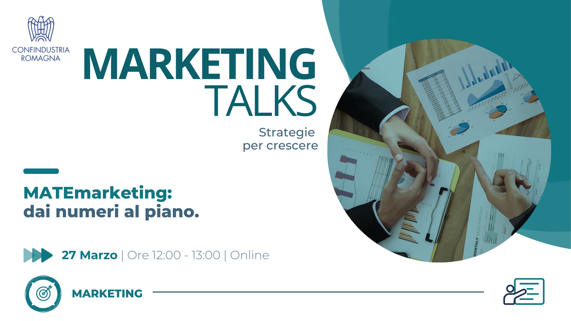 Primo appuntamento del ciclo MARKETING TALK: Strategie per crescere, dedicato al tema “MATEMARKETING – Dai numeri al Piano”, in cui vedremo come i dati possano diventare uno strumento concreto per orientare le decisioni di marketing e supportare lo sviluppo commerciale delle imprese.